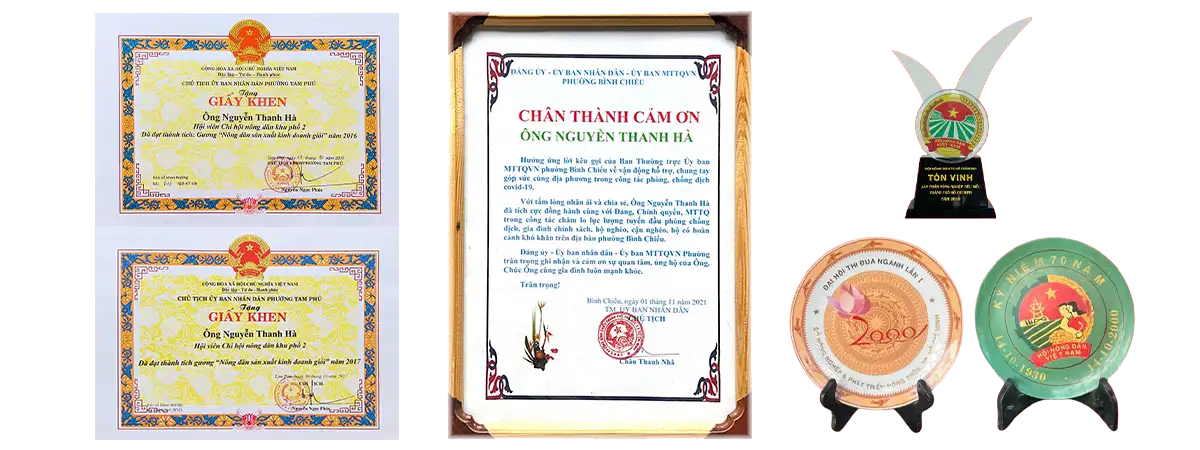 Hơn 50 năm gắn bó với Cây Mai bonsai và các loại cây khác. Nghệ nhân Nguyễn Văn Trận được đón nhận nhiều bằng khen, huân chương lao động hạng 2, huân chương vì sự nghiệp VAC, huân chương hội nông dân việt nam 1930-1995, huân chương vì sự nghiệp nông nghiệp và phát triển nông thôn và nhiều huân huy chương …v……v……khác.